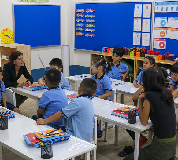 Year 3 – for students aged 7 at the beginning of the academic year. Year 4 – for students aged 8 at the beginning of the academic year. Year 5 – for students aged 9 at the beginning of the academic year. Year 6 – for students aged 10 at the beginning of the academic year. Each class is taught by an experienced expatriate teacher supported by a well qualified assistant teacher. Key Stage 2 students start classes at 8:45 am and finish at 3:30 pm.